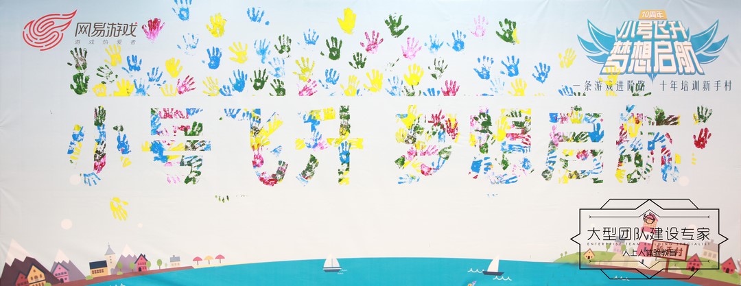 伙伴們在手印簽到墻,留下自己的手印勛章,最后呈現(xiàn)的就是本次訓練營的主題口號“小號飛升,夢想啟航”。