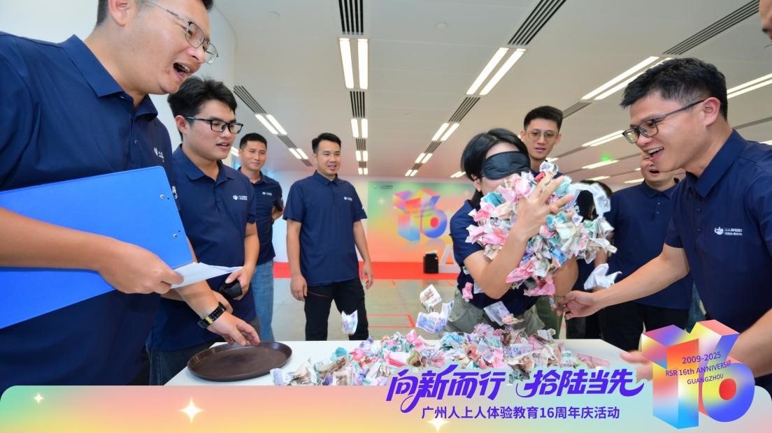 作為獎勵環(huán)節(jié)的【蒙眼撈錢】更是驚喜連連。根據(jù)排名,隊員們戴著眼罩在“錢山”中徒手撈幣,每一次出手都伴隨著陣陣喝彩,撈出的不僅是“財富”,更是屬于團隊的榮耀與歡樂。