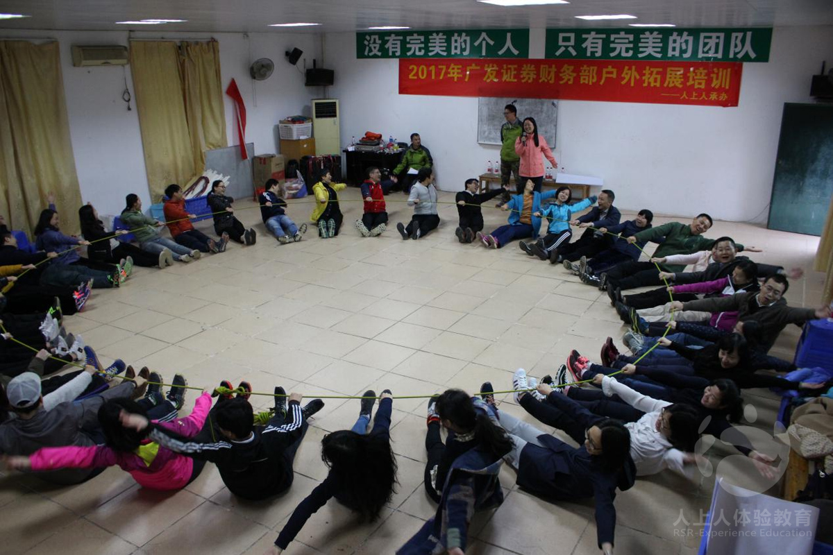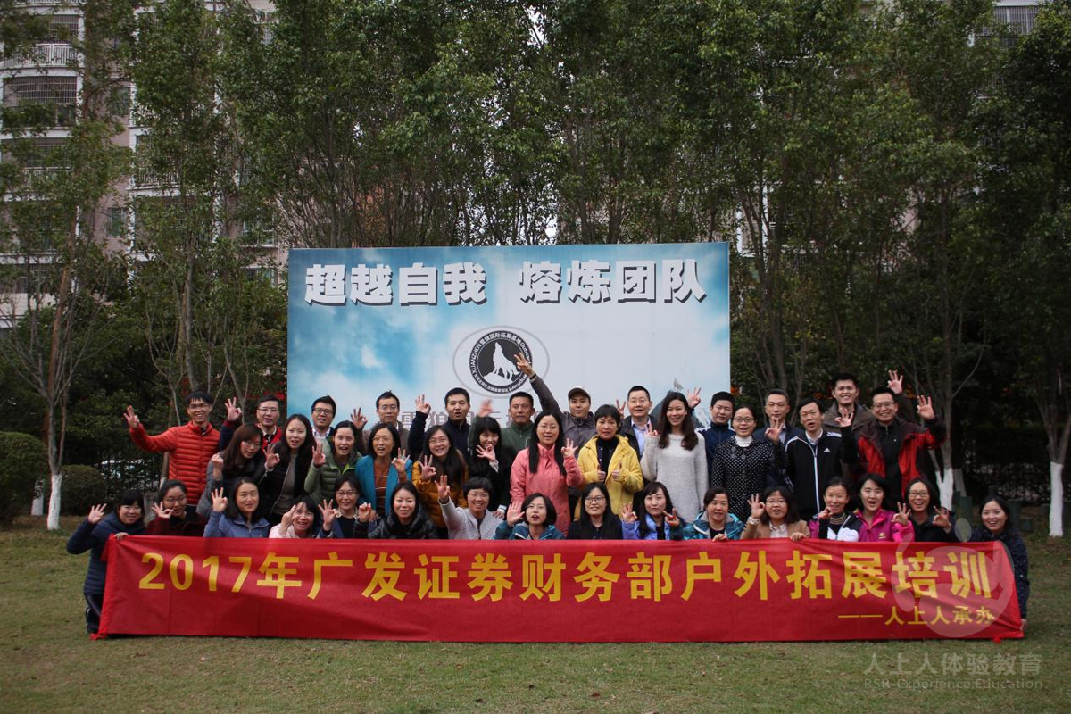 2017年2月25日,廣發(fā)證券財務(wù)部在浪漫的清遠(yuǎn)玄真拓展基地參加由人上人體驗教育承辦的世界球、共同進(jìn)退、梅花樁、妙筆生花、能量圈等趣味橫生且體現(xiàn)團(tuán)隊凝聚力的戶外拓展活動。
