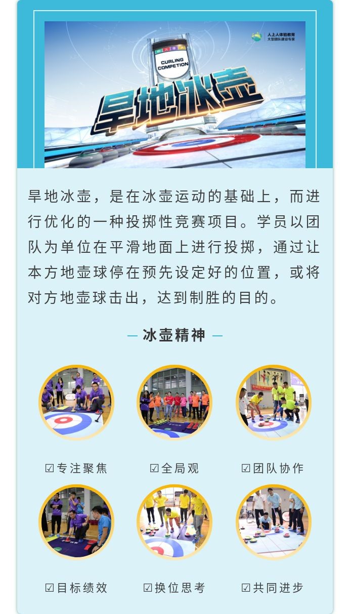 人上人體驗教育結(jié)合最熱的冰雪運(yùn)動趨勢,重磅推出了《旱地冰壺》主題拓展,讓大家一探冰雪熱!