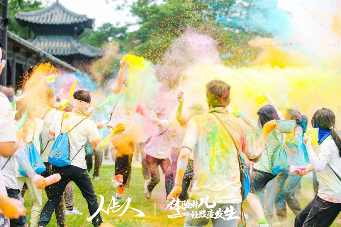 最后當(dāng)所有隊(duì)伍完成任務(wù)回到終點(diǎn),又開(kāi)啟了一場(chǎng)色彩狂歡趴,灑水派對(duì),大家盡情肆意拋灑彩粉,進(jìn)行最后一波“攻擊”......