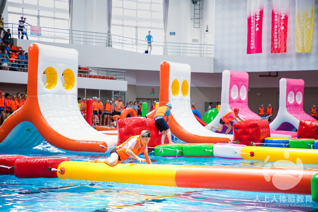 首先第一關(guān)是嗨爆全場的水上大沖關(guān),闖關(guān)過程中一個不小心就會掉水里哦,真是既刺激又緊張??!
