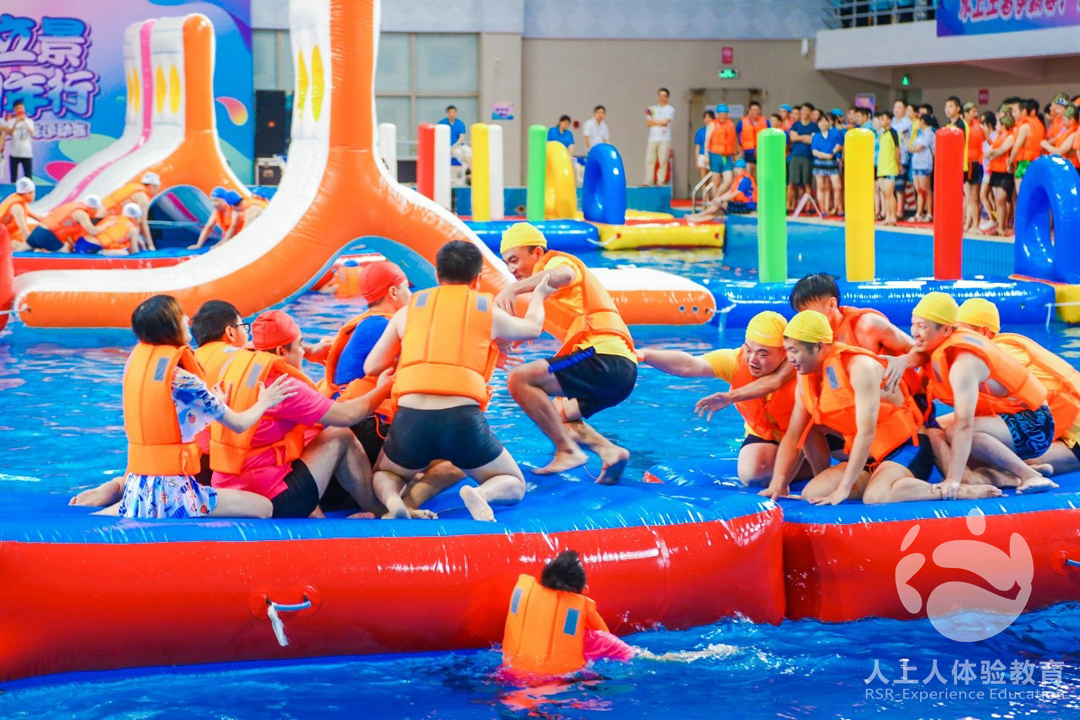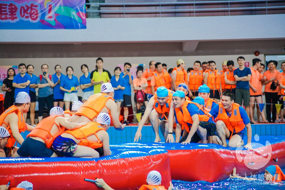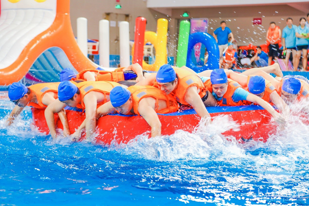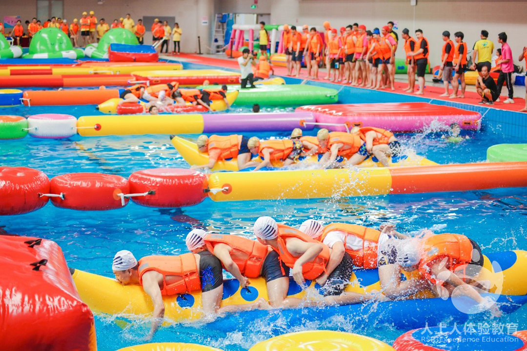 第六關(guān)是水上擂臺賽,這是一場依靠戰(zhàn)略、團隊合作的比賽,速來較量一場,一比高下。