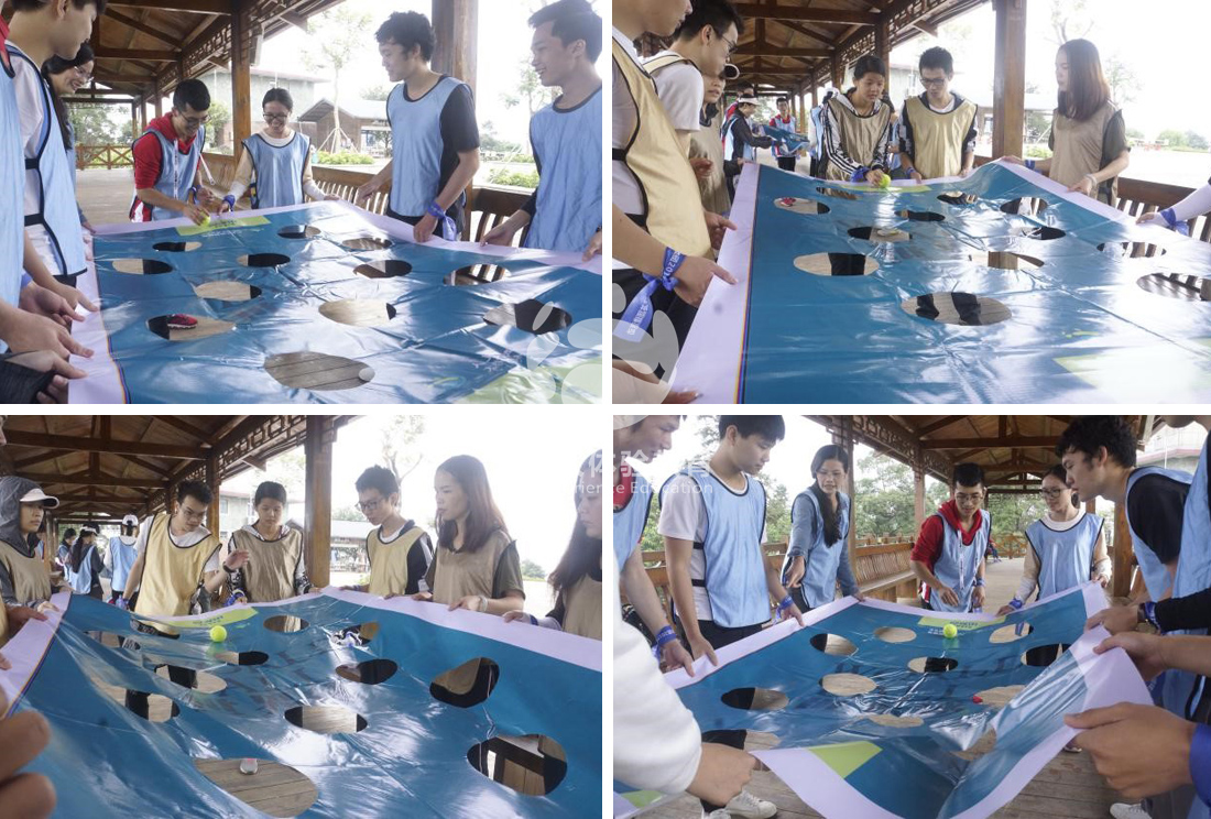 徒步結(jié)束小項目:世界之球。小小的球能否遵從命令從該走的軌道到達終點,能夠順利的在充滿洞的布上從起點走到終點,靠的是團隊的協(xié)作和力量,加油吧。