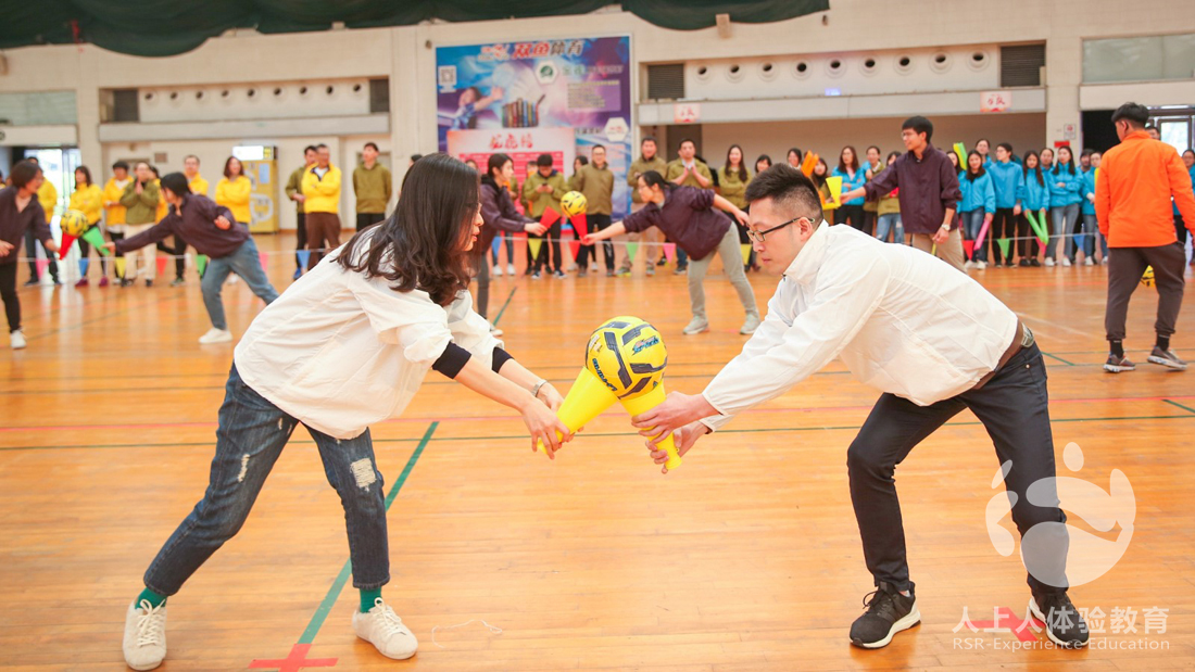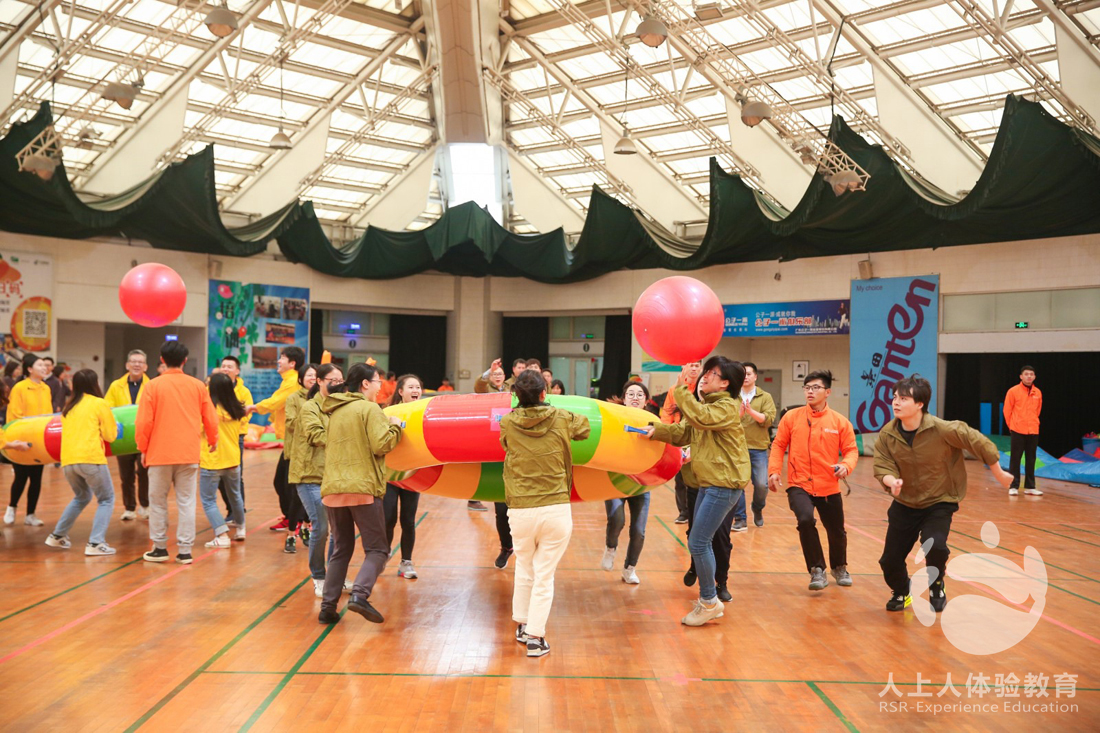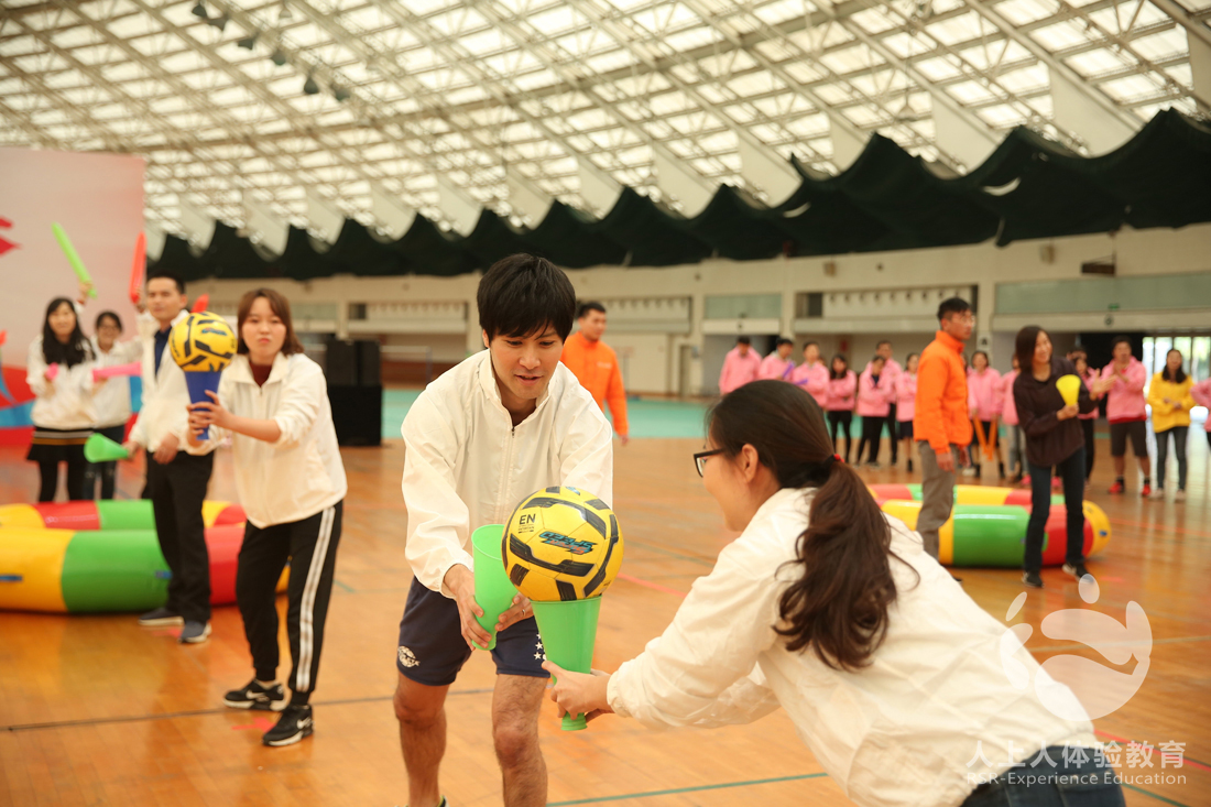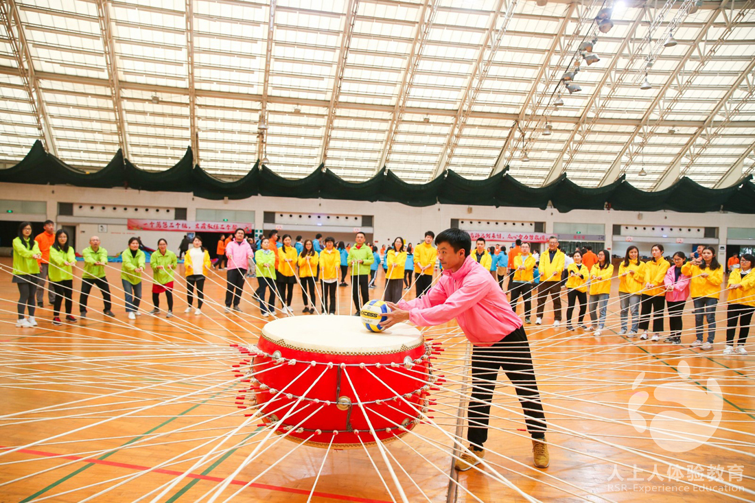 第三個挑戰(zhàn)項目是眾星捧月,小組之間相互配合,共同把球顛到終點,同時這個項目也為下一個百人戰(zhàn)鼓項目做了一個鋪墊,先讓隊員找點感覺,練練手。