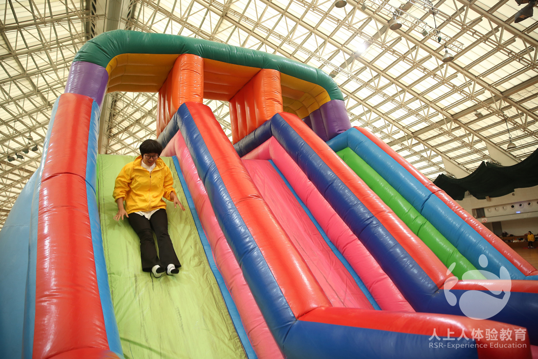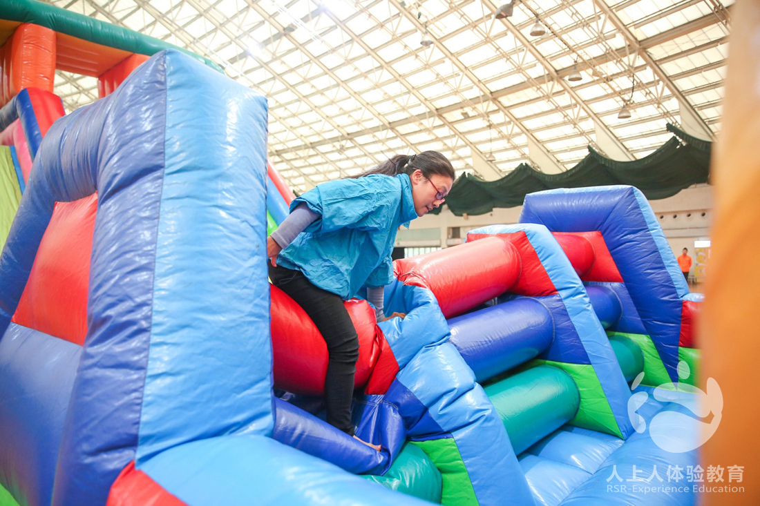 第三個挑戰(zhàn)項目是快樂大沖關+勇攀高峰,這個一個超級大型的充氣項目,由兩種大型充氣道具組成,隊員通關種種障礙,到達勇攀高峰,爬上頂端再與下一個隊友交接,最后一個隊員攀上高峰后會打開一條豎幅,“天再高也探,山再險勇攀,水再深敢潛,路再遠亦達”,伙伴們,加油,看好你們哦!