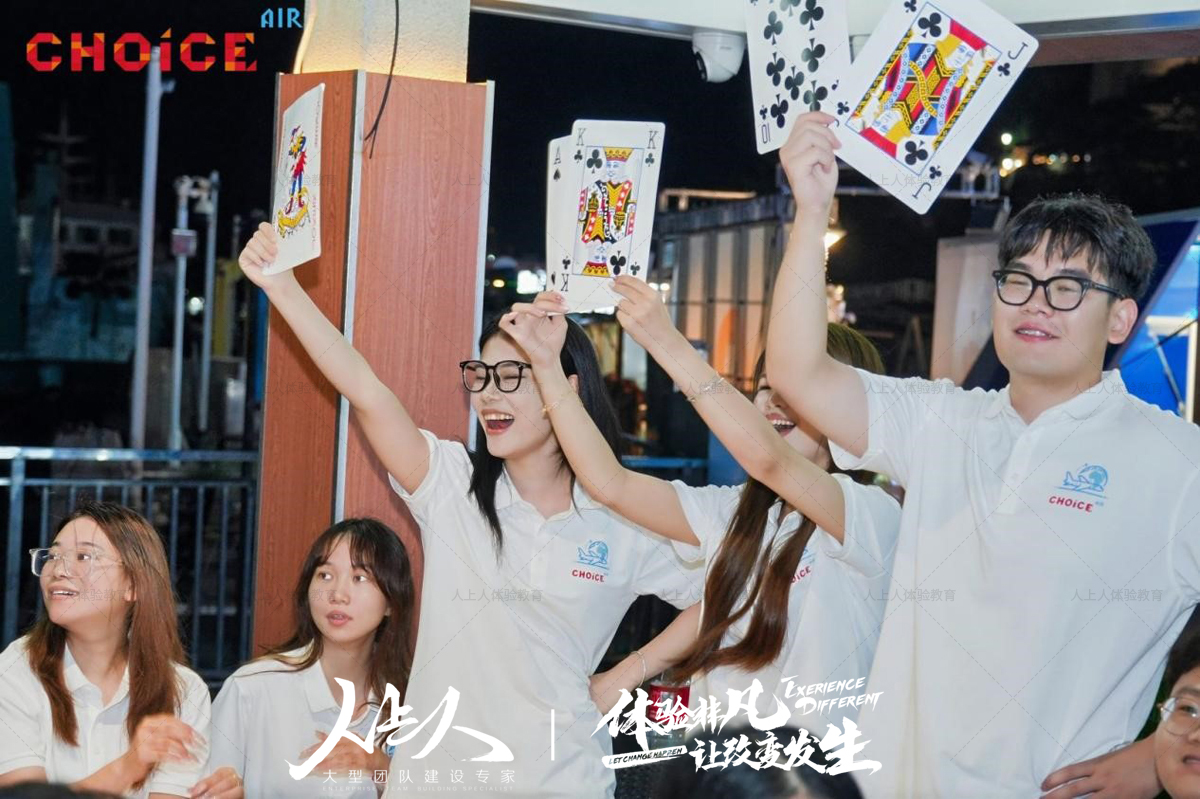 “巨人捕手” 項(xiàng)目結(jié)束后,全體員工搭乘游船前往桂山島。抵達(dá)海島并享用特色晚餐后,晚間的 “德州撲克” 項(xiàng)目如期開展。不同于傳統(tǒng)娛樂模式,此次德州撲克以團(tuán)隊(duì)為單位進(jìn)行,考驗(yàn)隊(duì)員的策略思考與團(tuán)隊(duì)決策能力。各隊(duì)伍在牌局中謹(jǐn)慎分析、相互商討,在輕松的氛圍中進(jìn)一步提升了團(tuán)隊(duì)協(xié)作意識(shí)。