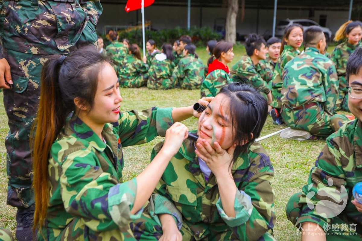 拓展培訓(xùn)開始前,大家換上迷彩服,裝扮點綴臉上,成員瞬時進(jìn)入軍訓(xùn)狀態(tài)。