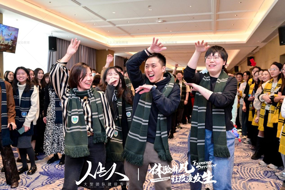 抵達(dá)后,開啟分院儀式,現(xiàn)場氣氛熱烈非凡,員工們領(lǐng)取到屬于各自學(xué)院的圍巾,格蘭芬多的勇敢紅、斯萊特林的狡黠綠、赫奇帕奇的溫暖黃、拉文克勞的智慧藍(lán),瞬間讓大家沉浸在魔法學(xué)院的氛圍之中。