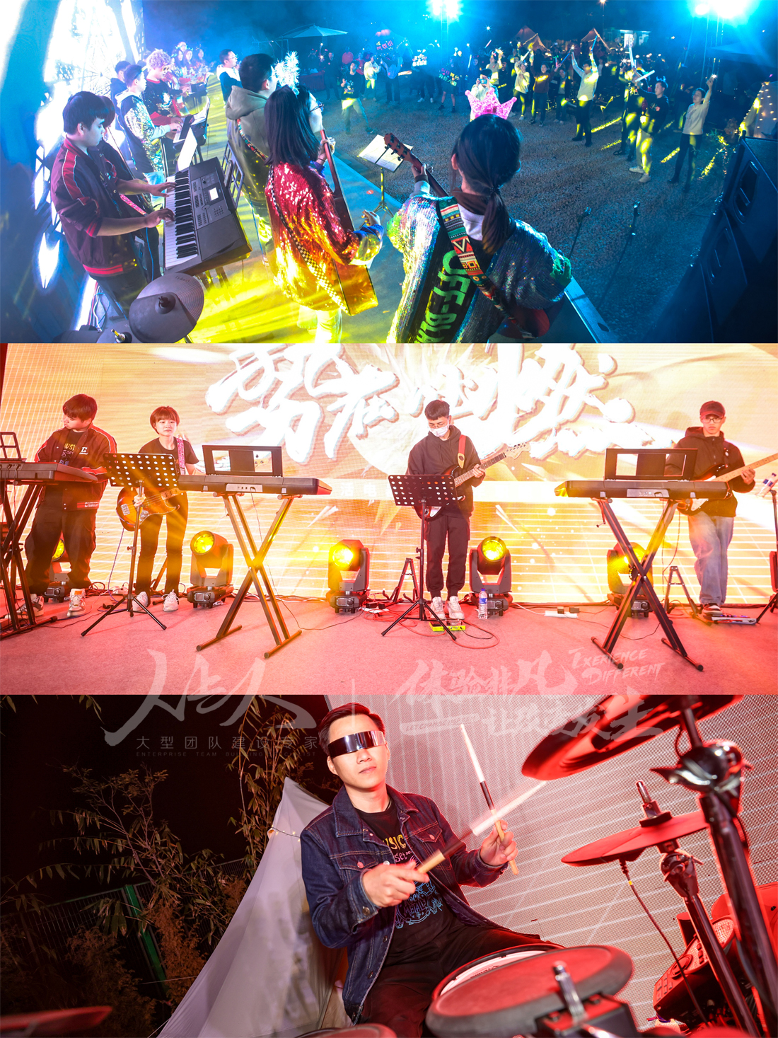 花式簽到+拍照留念→團(tuán)隊(duì)融合破冰→園游會(huì)項(xiàng)目體驗(yàn)→戶外燒烤/自制美食→樂(lè)器教學(xué)+分組排練→門(mén)票入場(chǎng)+氛圍物料發(fā)放→樂(lè)隊(duì)演出+篝火晚會(huì)