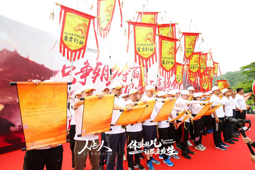 將定制有企業(yè)目標(biāo)的旗子插至巖頂,由領(lǐng)導(dǎo)/員工攀巖到頂部獲取旗子。