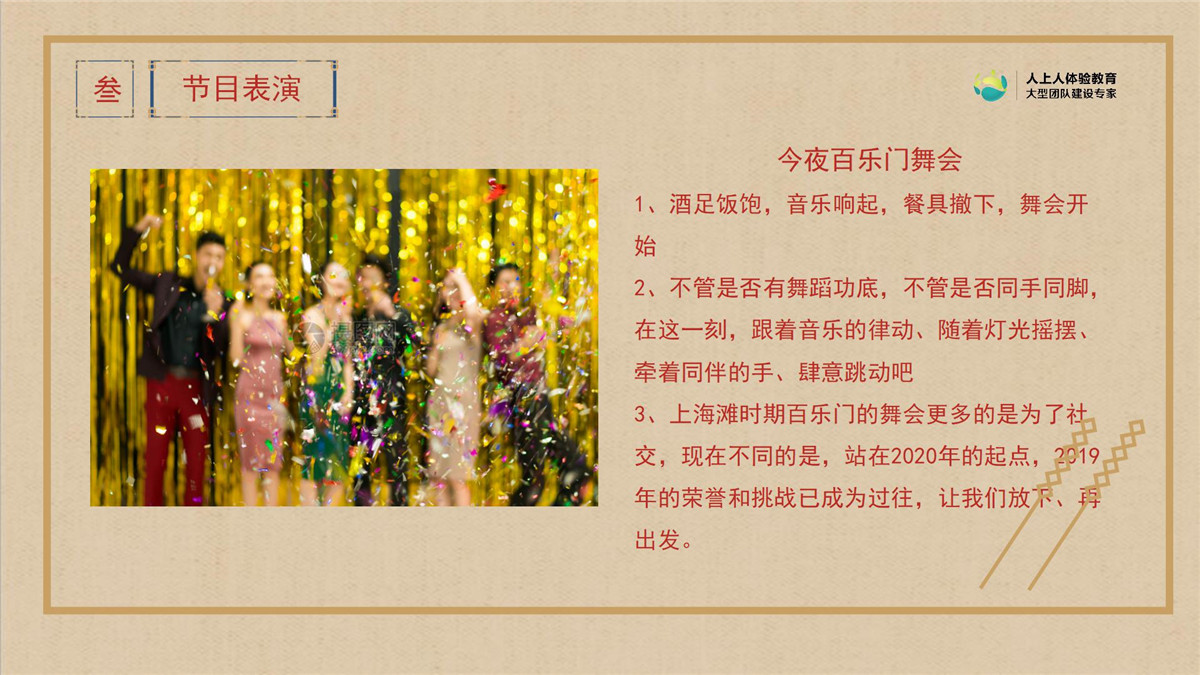 3、我們以百樂門為情景, 打造出全新的年會(huì)體驗(yàn),復(fù)古與現(xiàn)代、華麗與精彩同在!