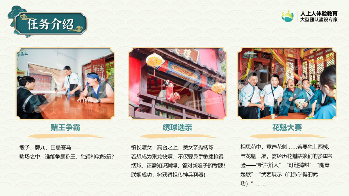 1、新體驗(yàn):時(shí)下最流行的團(tuán)建形式,融入“實(shí)景劇本殺“元素,給與參與者沉浸式的互動(dòng)體驗(yàn)