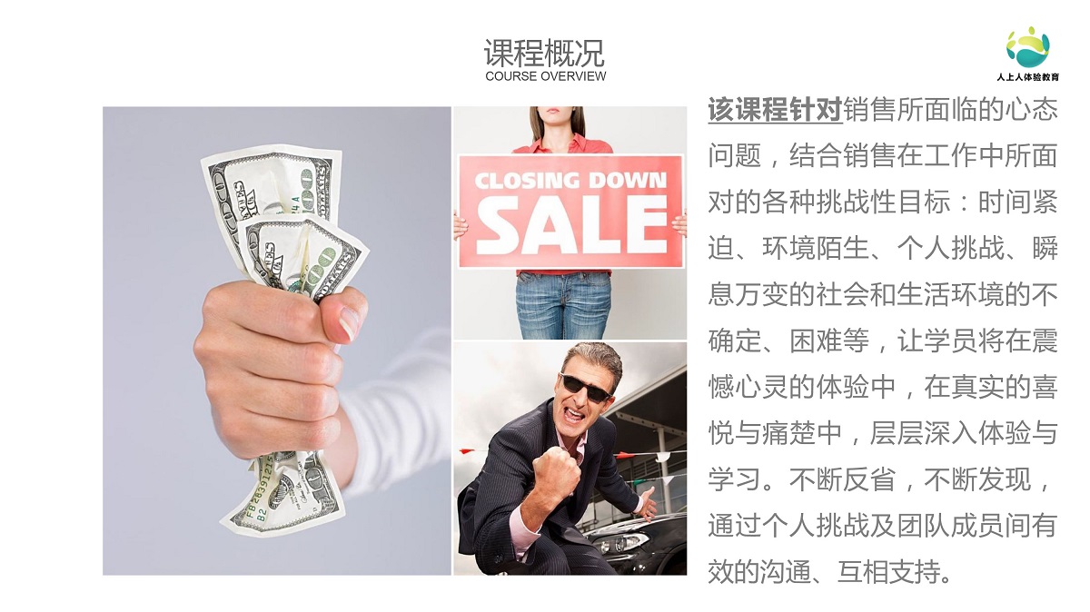 針對(duì)銷售人員的特點(diǎn),我們貫穿課程的四大關(guān)鍵詞“團(tuán)隊(duì)合作”、“挑戰(zhàn)與創(chuàng)新”、“馬上行動(dòng)”和“激勵(lì)”,并以此為基礎(chǔ)為銷售團(tuán)隊(duì)設(shè)計(jì)該課程。最大程度提升銷售團(tuán)隊(duì)的戰(zhàn)斗力及業(yè)績表現(xiàn)。