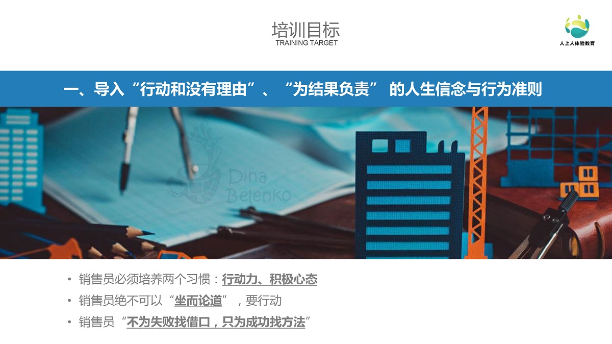 1、導(dǎo)入“行動(dòng)和沒有理由”、“為結(jié)果負(fù)責(zé)” 的人生信念與行為準(zhǔn)則;