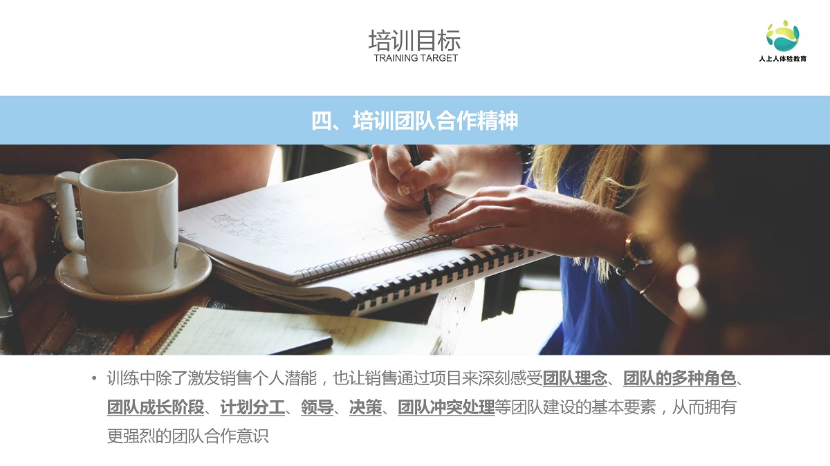 4、培訓(xùn)團(tuán)隊(duì)合作精神。